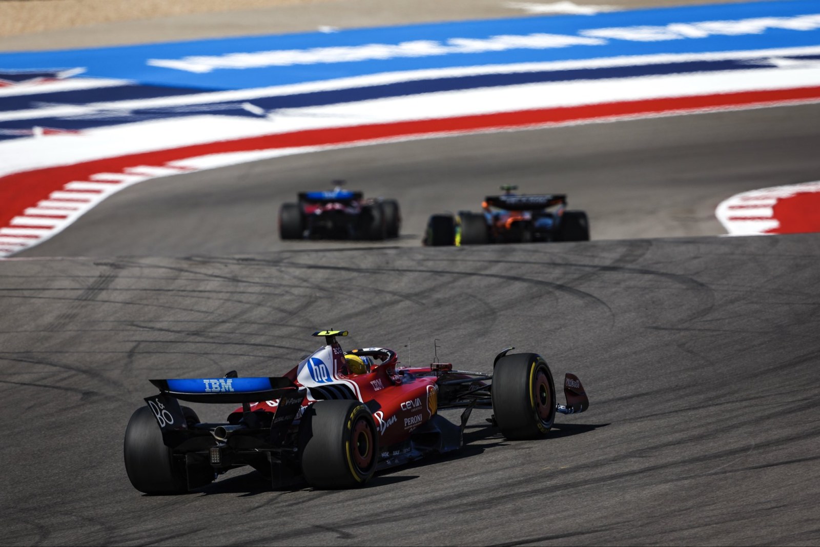 Hamilton y Leclerc aprovecharon la confusión en la curva 1 de la carrera corta para terminar cuarto y quinto. La dupla Ferrari continuó en la clasificación del Gran Premio de Estados Unidos, con el monegasco tercero y el siete veces campeón quinto. En la carrera, el piloto #16 mantuvo su posición y subió al podio, su primera vez desde julio, seguido de cerca por el británico.